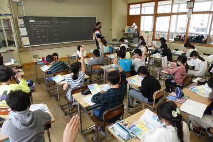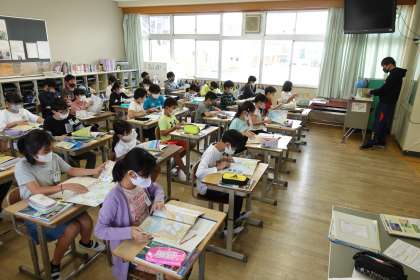 5年2組です。社会の授業です。