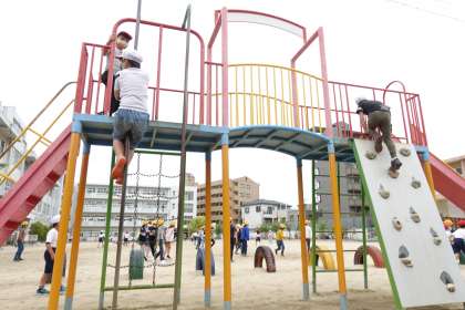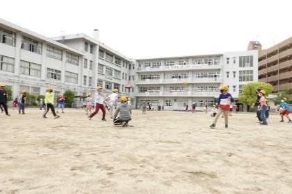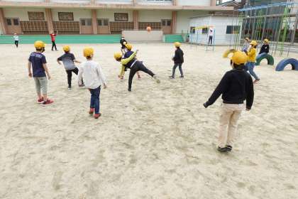グラウンドで遊ぶ子どもたちです。