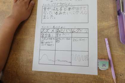 3年2組です。教室で鑑賞(音楽科)の授業です。