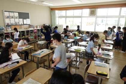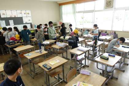 朝の準備をする5年生です。今日は5年生の教室に行ってみました。