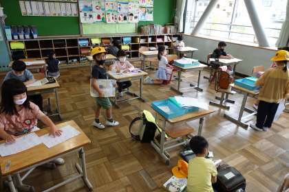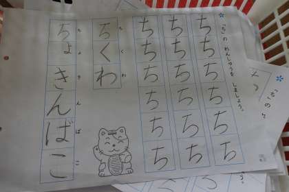 写真は朝の準備をする1年生です。家庭学習も頑張っています。