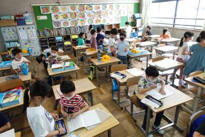 朝の準備をする2年生です。今日も頑張りましょう。
