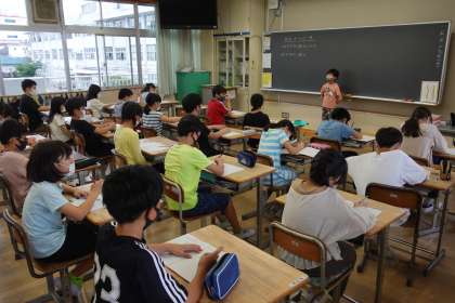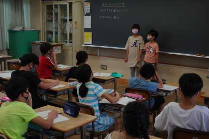 5年2組です。「住北っこハッピー祭り」について、クラスで話し合っています。
