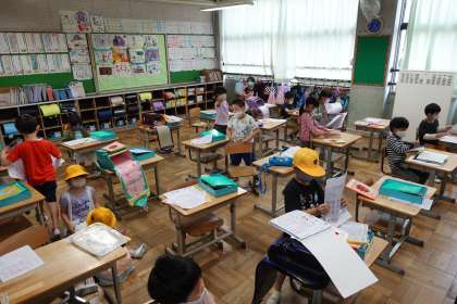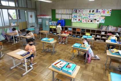 写真は朝の準備をする1年生です。今日も頑張りましょう。