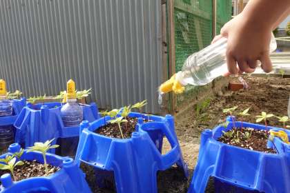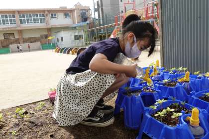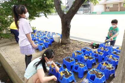 6月2日(水)です。今朝も3年生がホウセンカに水やりをしています。家でもお花に水やりをしていると教えてくれました。