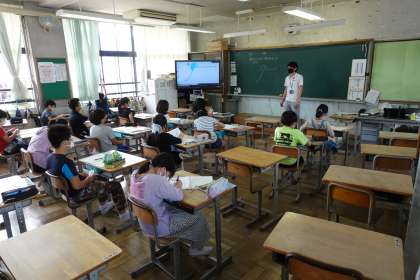 4年1組です。算数の授業です。この後、自分たちで問題を解く方法を見つけます。