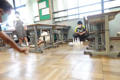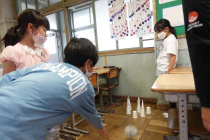 3年1組です。1組は「ボーリングと1円玉落とし」です。
