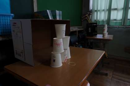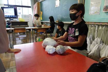 4年2組です。2組は「的あてとフルーツバスケット」です。