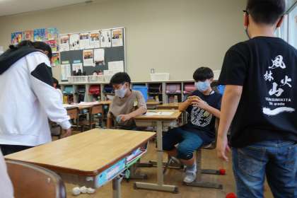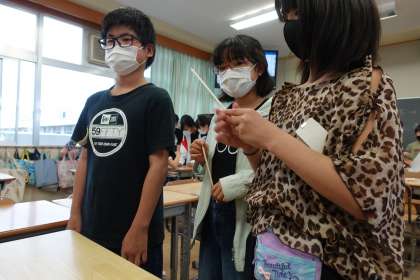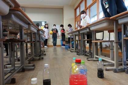 6年1組です。1組は「玉入れ、ワールドウルフ、おみくじなどなど」です。