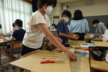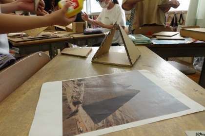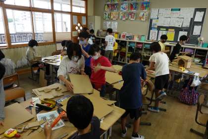 6年2組の図工です。それぞれの建築物が形になってきました。