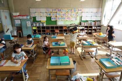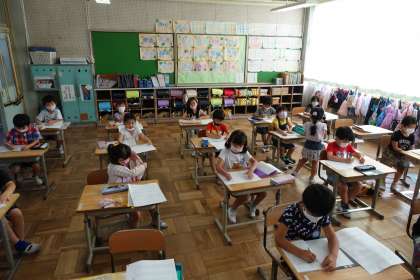 写真は朝の準備をする1年生です。