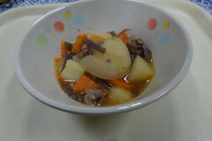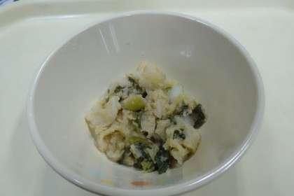 今日の献立は、豚肉の胡麻煮、ご飯、おひたし、のり、牛乳です。