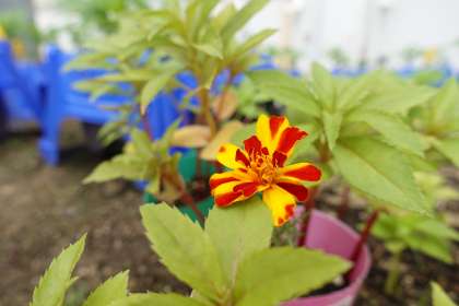 3年生が教えてくれました。マリーゴールドが咲き始めました。