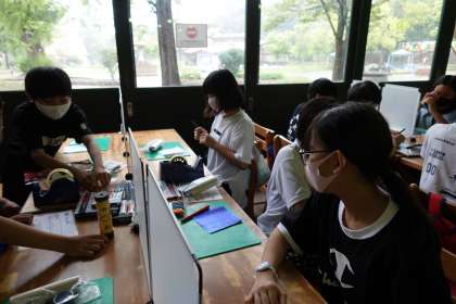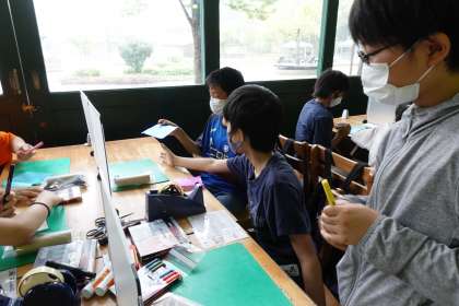 体験学習のスタートです。まずは、万華鏡づくりです。楽しみにしていた人が多かったです。