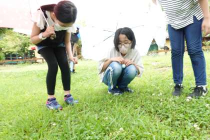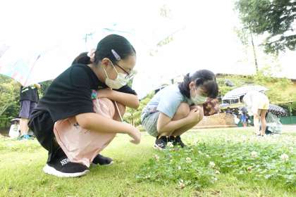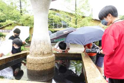 万華鏡づくりが終了後、次の体験学習まで少し外に出ました。