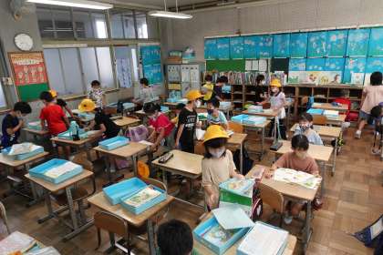 朝の準備をする2年生です。