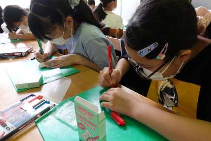 体験学習のオカリナづくりです。