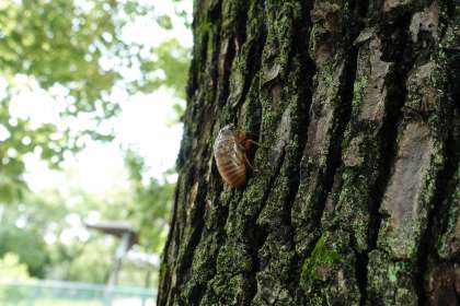 写真ではわかりにくいですが、なんと、羽化する前のセミを見つけました。子どもたちも大喜び。校長先生も、実は初めて見ました。