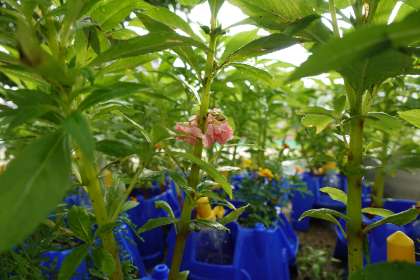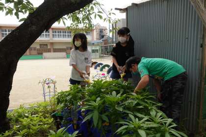 ホウセンカが咲き始めました。3年生が教えてくれました。