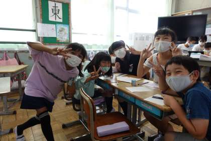 こちらは休み時間の3年2組です。仲がとてもいいですね。
