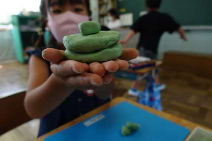 「校長先生、おいしそうなパンケーキでしょう?」1年生が見せてくれました。