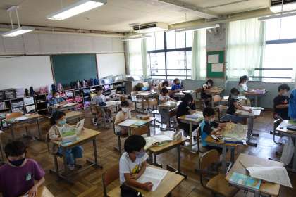 写真は3時間目の3年1組、2組です。よく頑張っています。