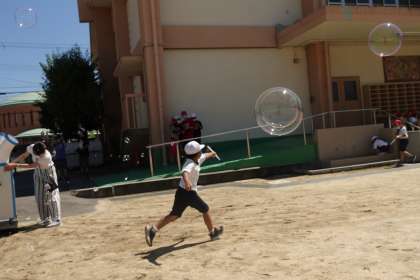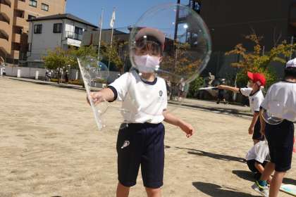 1年生の続きです。シャボン玉の優しい雰囲気を撮影するのは難しいです。