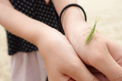 2年生が一生懸命バッタを捕まえていました。
