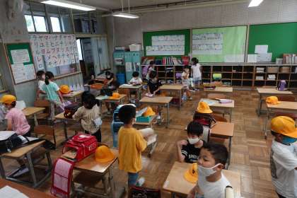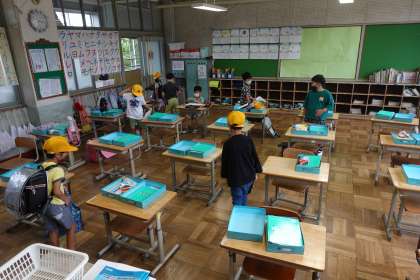 今日も1日頑張りましょう!写真は朝の準備をする1年生です。
