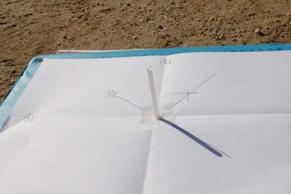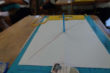 3年2組が理科の観察をしていました。「太陽の光と影」を学習しているそうです。午前9時にた影と、この後午前11時15分にできる影を比較するそうです。