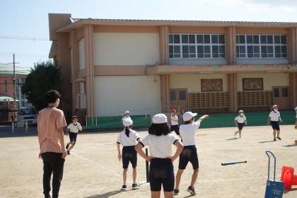4年2組の体育を撮影しました。「ティーボール」で盛り上がっていました。楽しそうです。