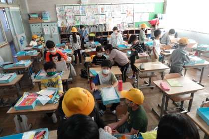朝の準備をする2年生です。金曜日の遠足はとても楽しかったですね。気持ちを切り替えて今日からまた頑張りましょう。