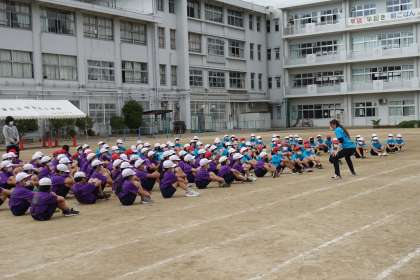 午後の練習風景です。今日から「絆」のTシャツを着ます。