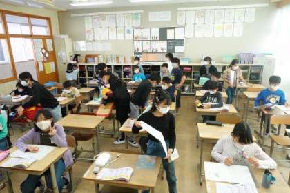 今日は、新館の高学年教室にも行きました。5年生の様子です。