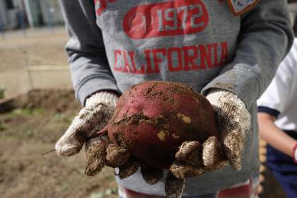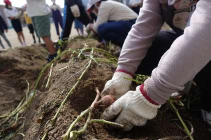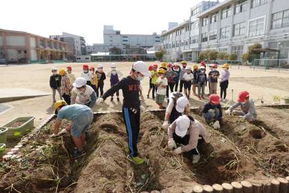 2年生は生活科の授業です。今日は芋ほりです。