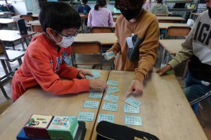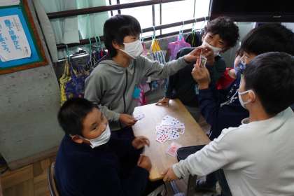 今日は外で遊べないので教室ですごしています。仲がいいですね。