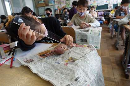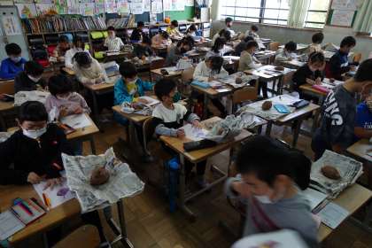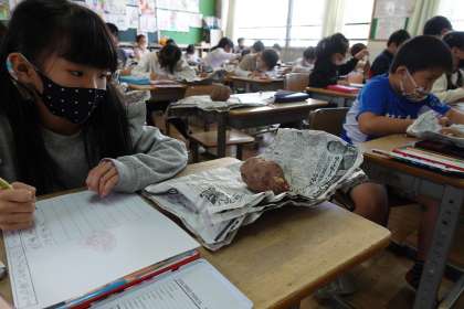 2年生の様子です。自分たちで掘ったサツマイモを観察しています。