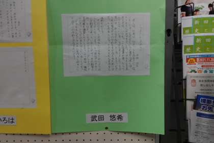 大東市小中学生弁論大会の、4年生「展示の部」(作文)で、住道北小学校からは武田悠希さんの作文が選ばれ、大東市立市民会館1階ロビーに展示されています。(期間は11月13日から21日までです)おめでとうございます。よく頑張りました。