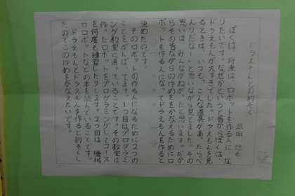 将来はドラえもんとの約束を果たして、見事なロボットを作ってください。
