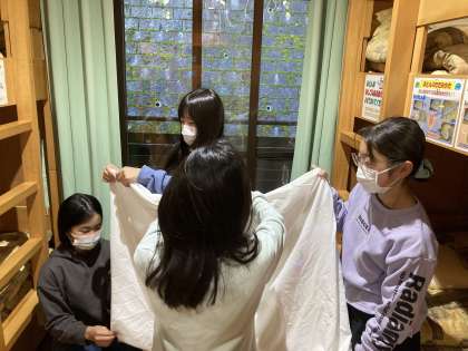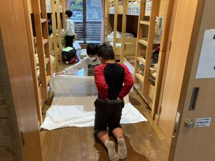 6時45分に起床し、朝の健康観察も済みました。全員元気で体調不良者はいません。シーツ、枕カバーなど手際よくたたんでまとめ、リネン室に返しています。