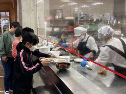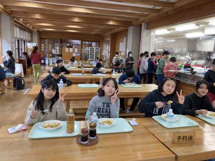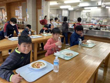 昼食は、子どもたちの大好きなカレーライス。朝からたくさん活動しておなかもすいています。いただきます。