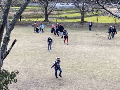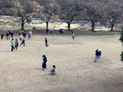 バス出発の時刻まで広場で遊びます。