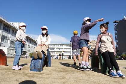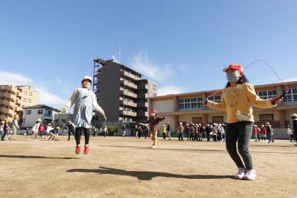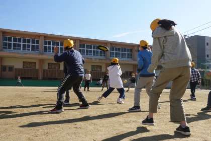 休み時間のグラウンドです。今日はとてもいい天気です。