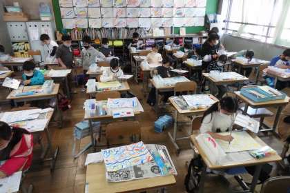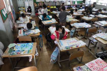 2年1組です。図工の授業です。