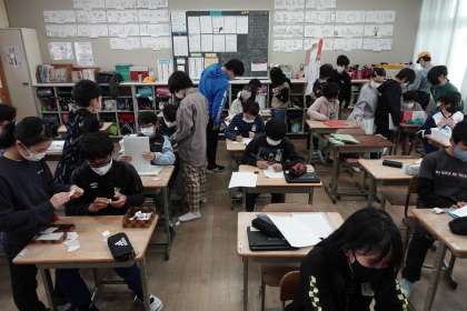 朝の準備をする6年2組です(1組は更衣中でした。)