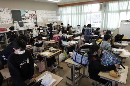 朝の準備をする6年生です。修学旅行までいよいよ1週間です。