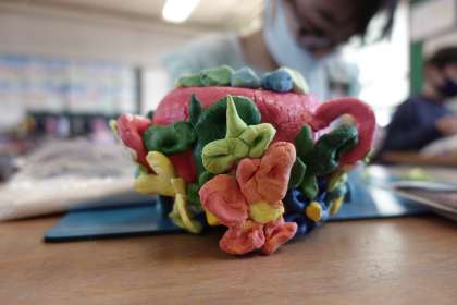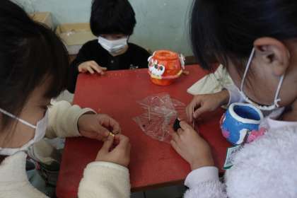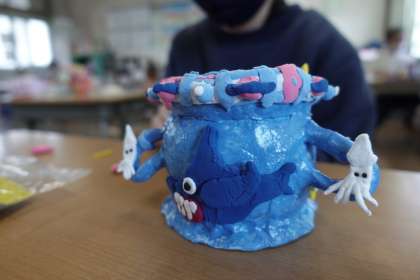 3年1組の図工です。制作中の「壺」がどんどんかっこよく進化しています。