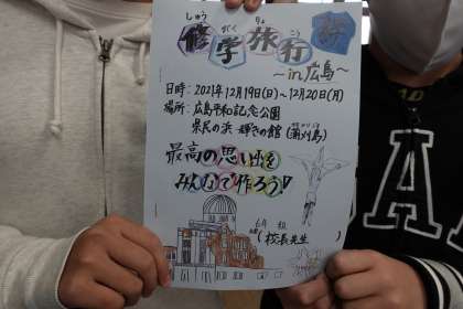 「校長先生、修学旅行当日はよろしくお願いします。」と、2名の6年生がしおりを校長室に持ってきてくれました。当日は晴れて暖かくなるといいですね。