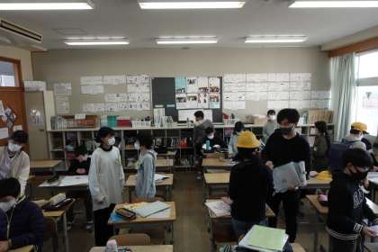 朝の準備をする6年1組と2組です。