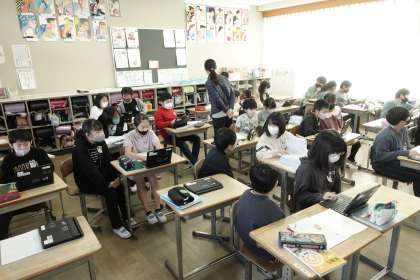 難しい用語も子どもたちは理解しています。さすがです。先生の指示通り、すぐに課題をダウンロードしました。
